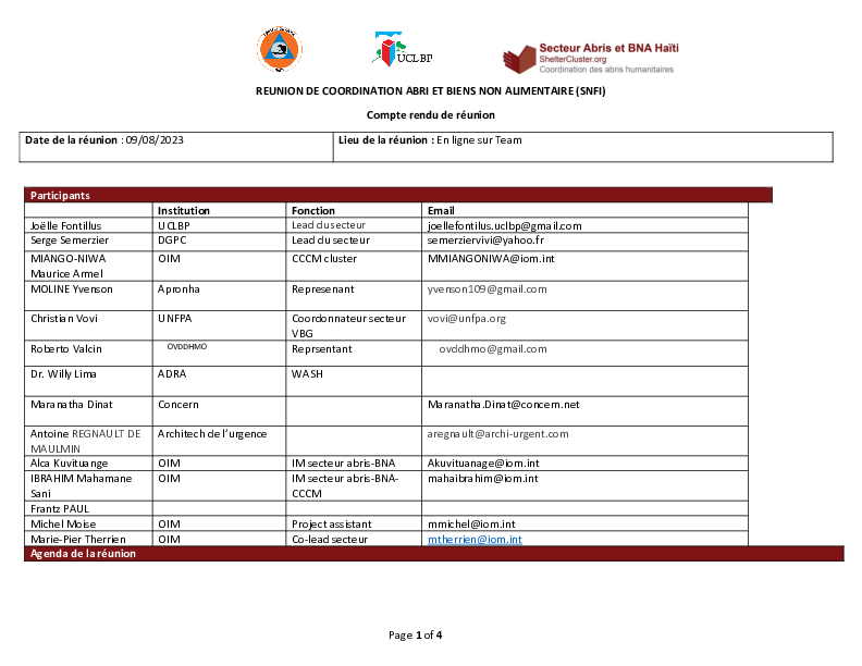 Haiti - CR réunion du cluster national du 09 Aout 2023
