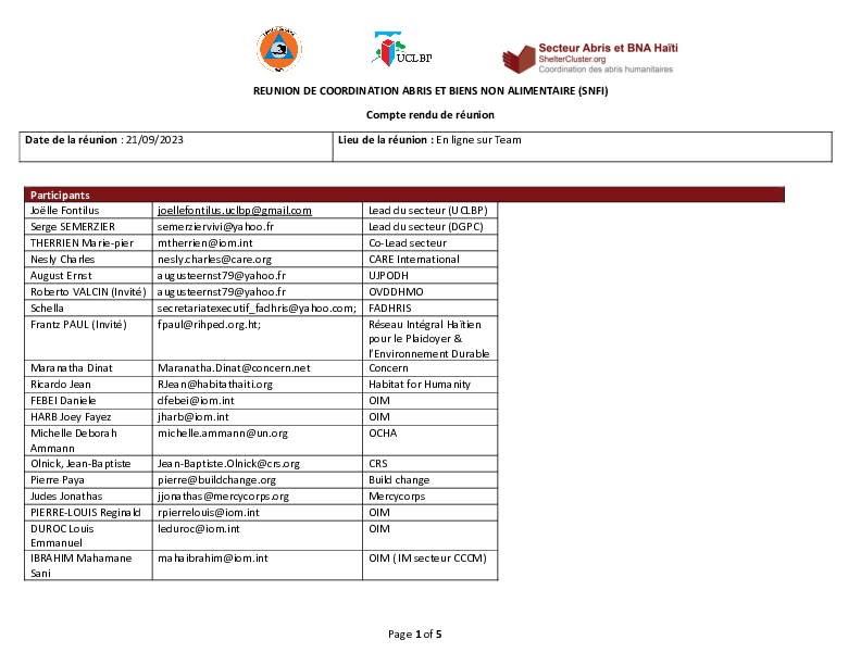 Haiti - CR réunion du cluster national du 21 Septembre 2023