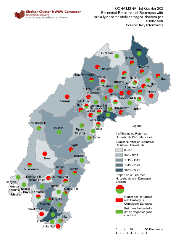 Estimated Proportion of Returnee Households who have reported damages per Subidivsion Key informants OCHA MSNA