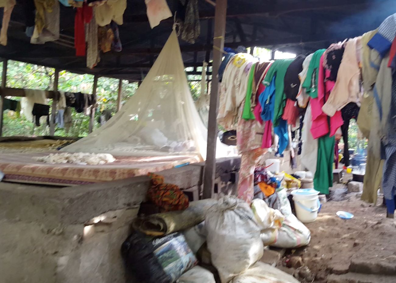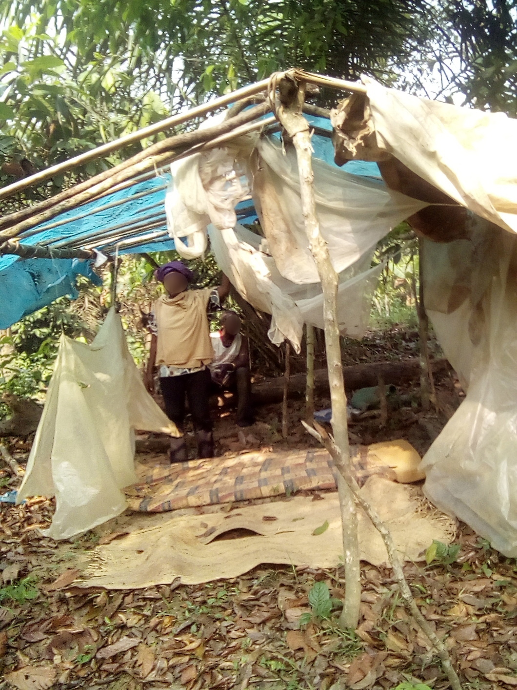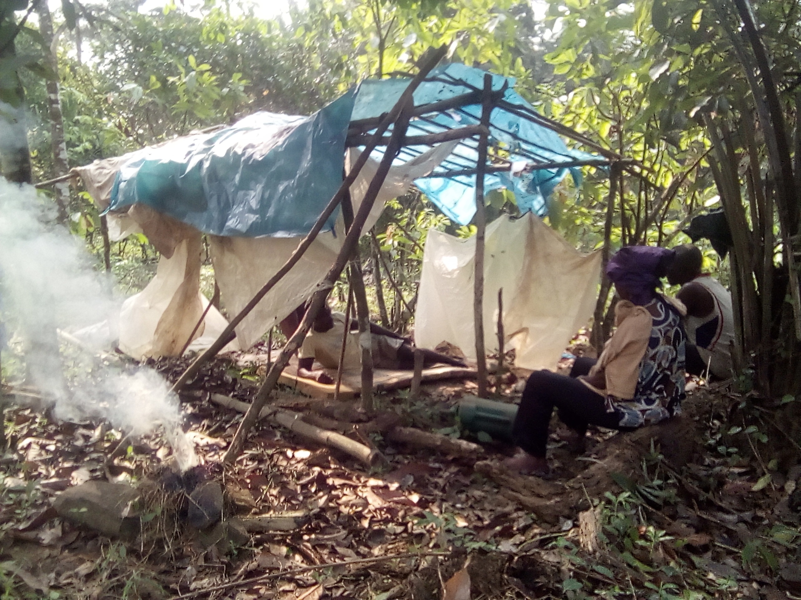 Lacking access to shelter of any kind in their displacement, partners have documented that agricultural infrastructure such as shades, farmhouses, or cocoa ovens are used as shelter. Not designed for living, these shelters like basic features of easy habitability and comfort.