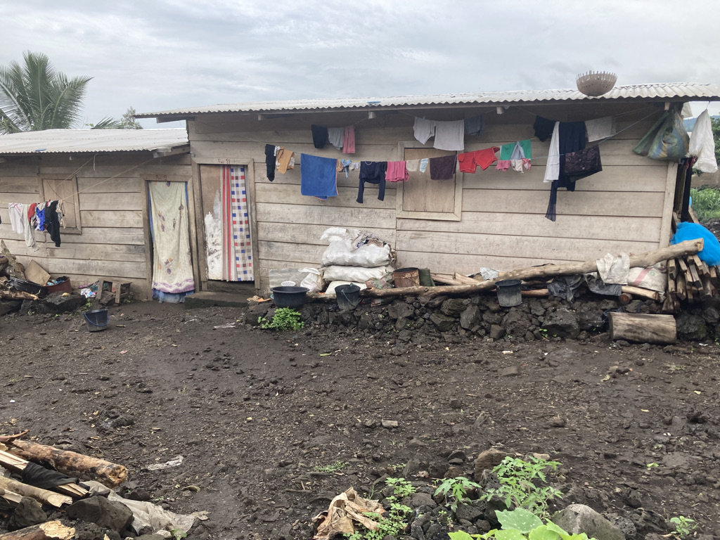 A wooden shelter built by Plan International with funding support from UNHCR in 2021 in Wotutu village, Limbe, Southwest Division