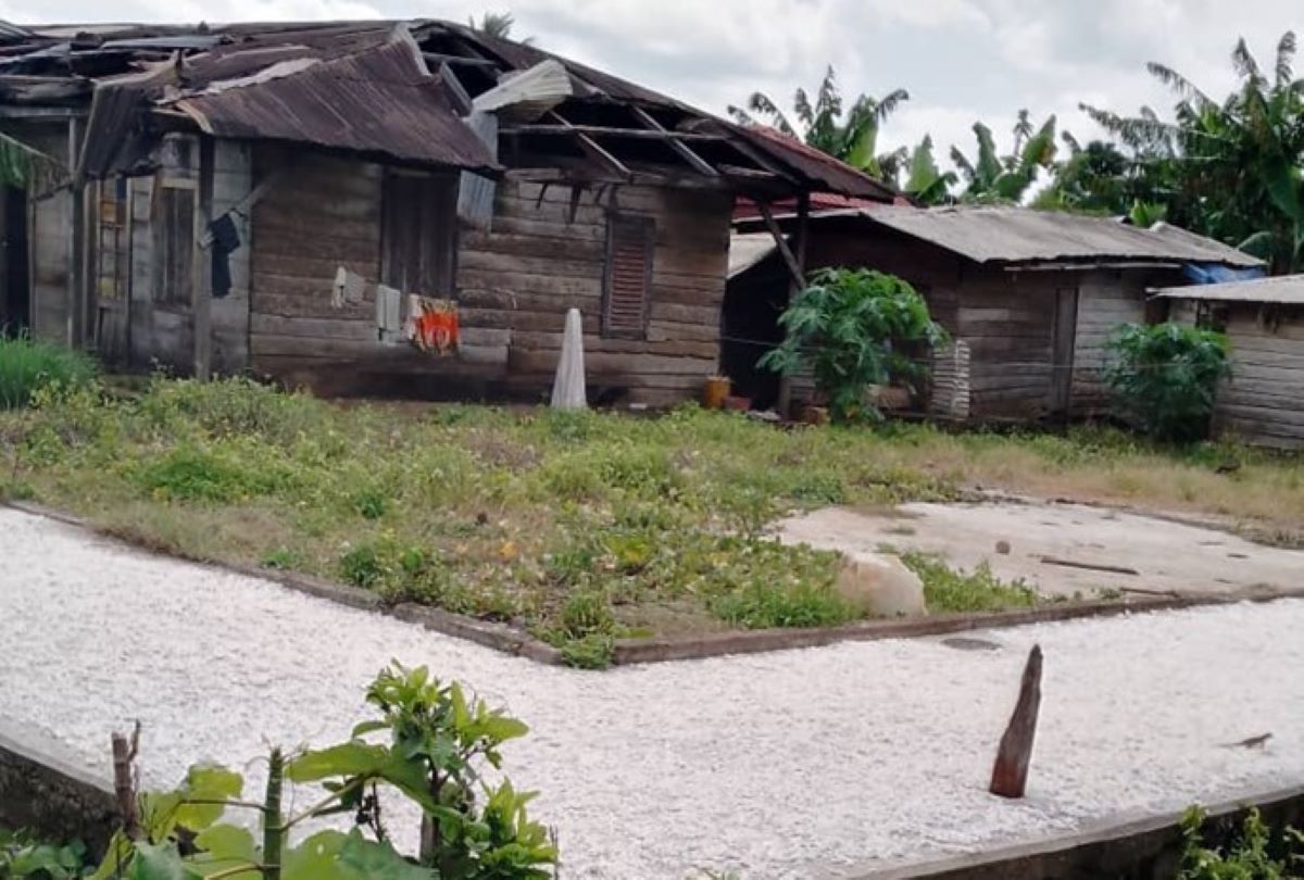 A damaged wooden shelter in the Southwest recorded during the Plan International household assessment conducted for the Shelter Cluster.