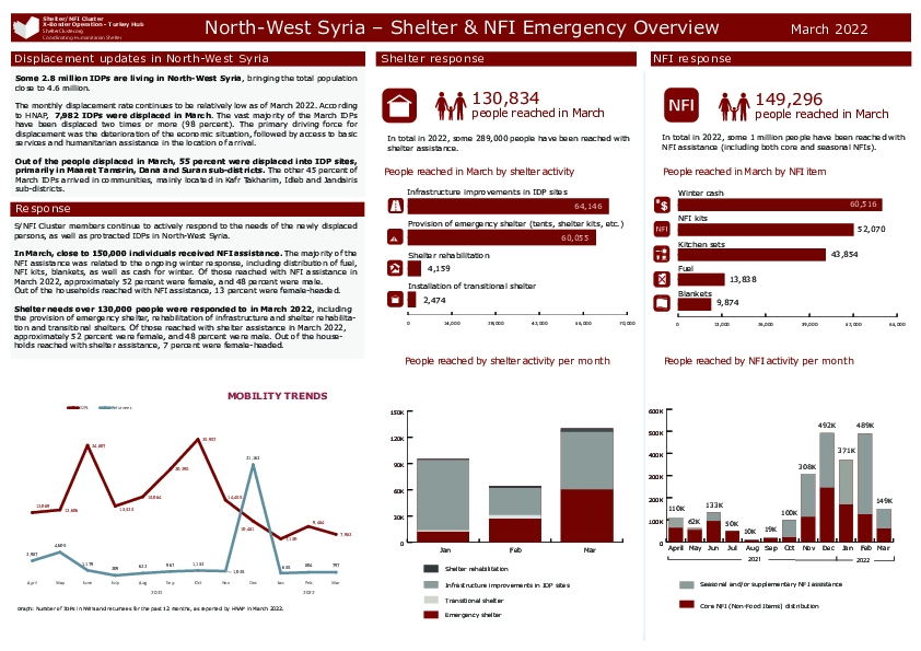 North-West Syria Shelter/NFI Cluster monthly factsheet.