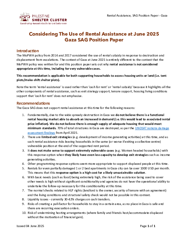 OPT SC Gaza Position Rental Assistance @ June2025