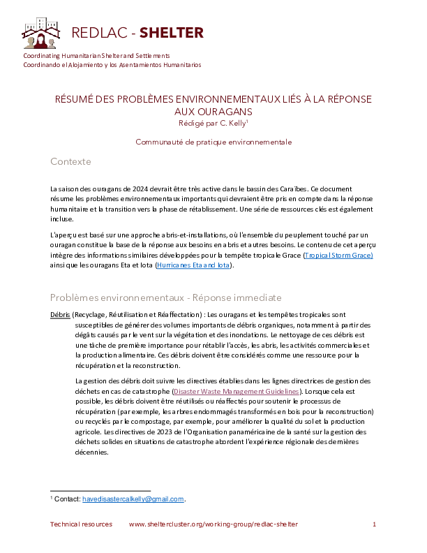 Résumé des problèmes environnementaux liés à la réponse aux ouragans