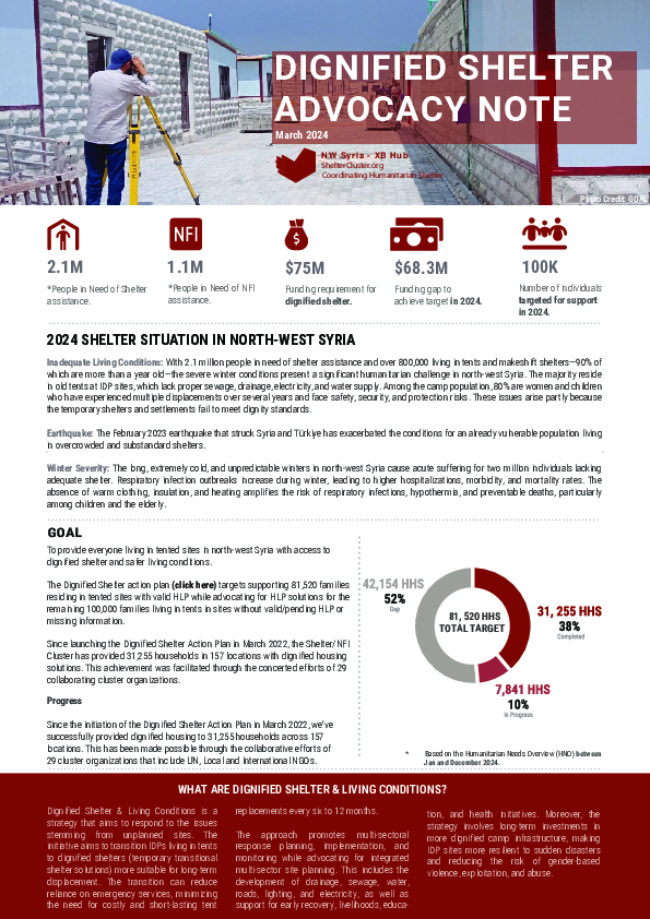 - Addressing the emerging need for safe and dignified shelters and improving living conditions, following over 12 years of conflict and the devastating earthquake in February 2023.