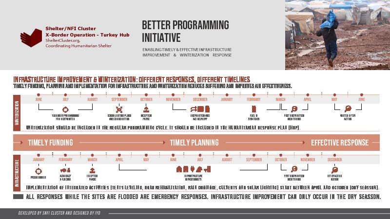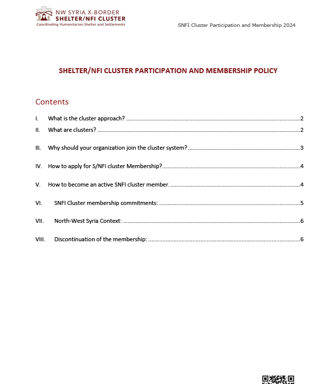 The Shelter/Non-Food Items (S/NFI) Cluster, co-led by UNHCR and CARE, coordinates the efforts of approximately 80 member organizations in the cross-border operation. Based in Gaziantep, South Turkey, S/NFI provides cross-border assistance in north-west Syria and remotely coordinates the response.