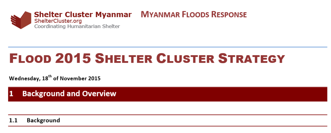 The Shelter Cluster in Myanmar is led by UNHCR and has been activated for the past two and a half years. However, given the extensive damage IFRC has been asked, in its capacity as the Global Shelter Cluster lead for natural disasters as well as through discussions in country, to coordinate the Shelter and NFI response at the sub-national level. UNHCR will continue to lead the cluster in Rakhine State and at the national level in Yangon and IFRC will coordinate the flood response in the three most affected areas: Chin State, Sagaing Region and Magway Region. IFRC will coordinate with UNHCR in the same way that it has done previously in Myanmar and continues to do so at the Global level.