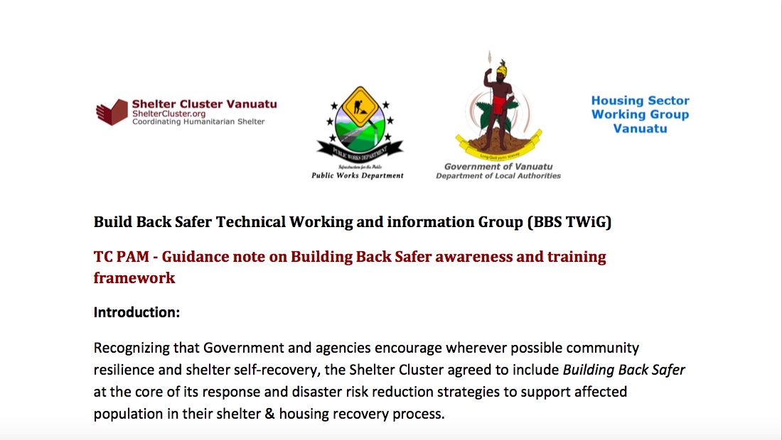 Shelter Cluster Vanuatu is led by