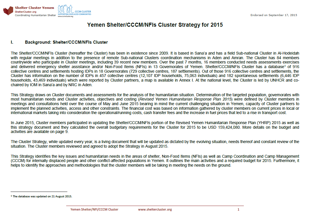 2015 Shelter CCCM NFI Cluster Strategy- EN