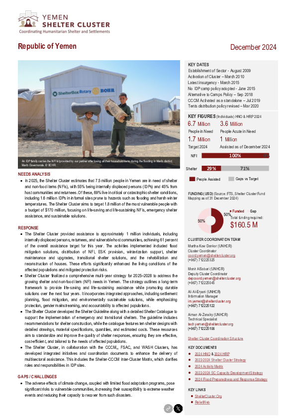 YEMEN Shelter Cluster Factsheet for Q4 2024